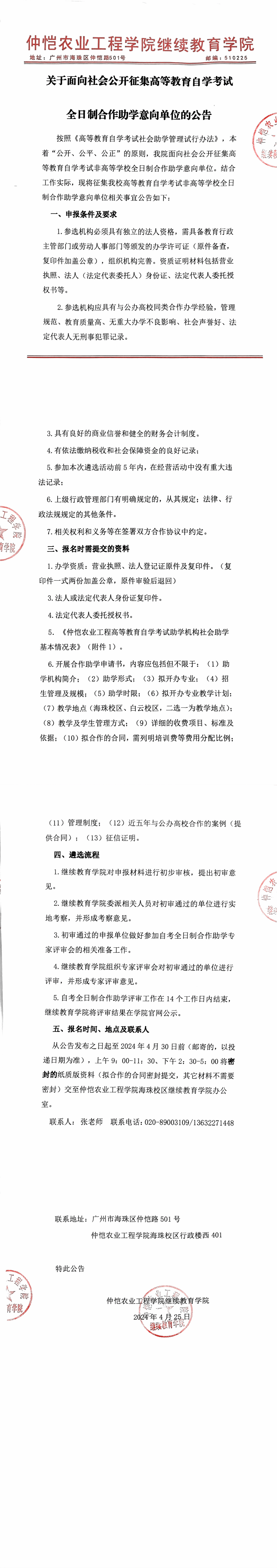 仲恺农业工程学院m88 app关于面向社会公开征集高等教育自学考试全日制合作助学意向单位的公告