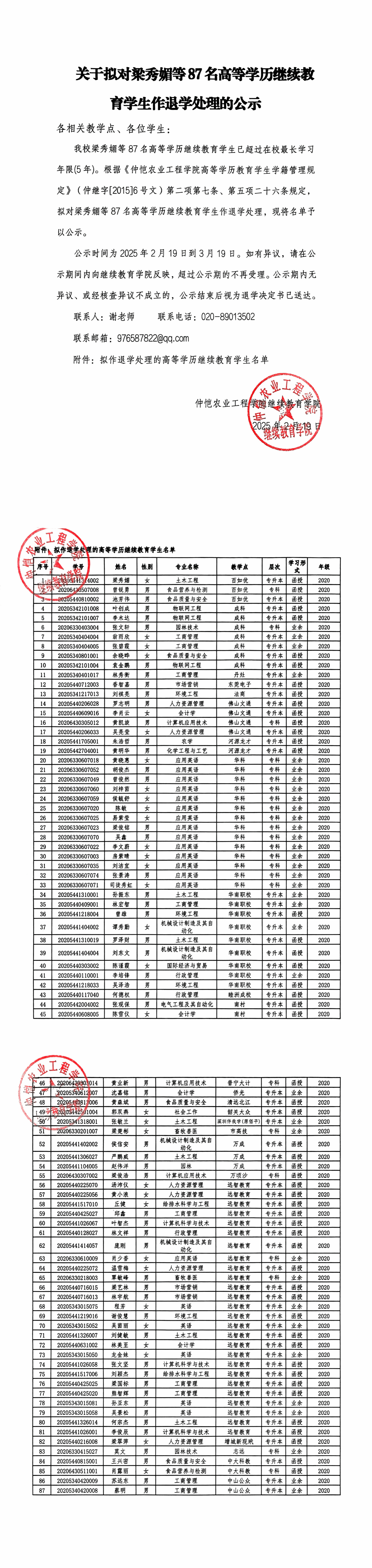 关于拟对梁秀媚等87名m88 app,m88 app学生作退学处理的公示