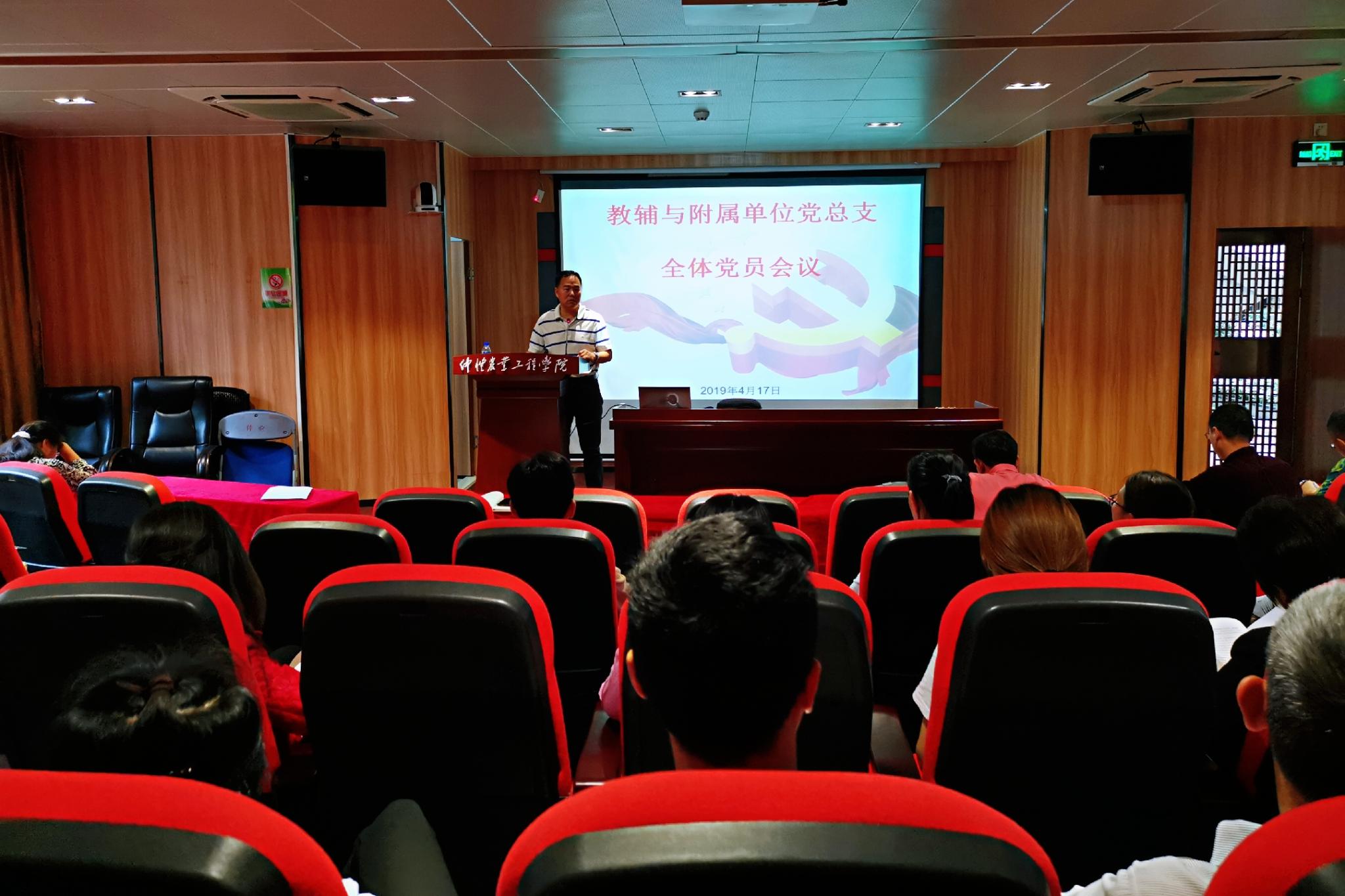 4月17日下午,教辅与附属单位党总支在英东楼111室召开全体党员大会,并由党总支书记刘新周上党课。