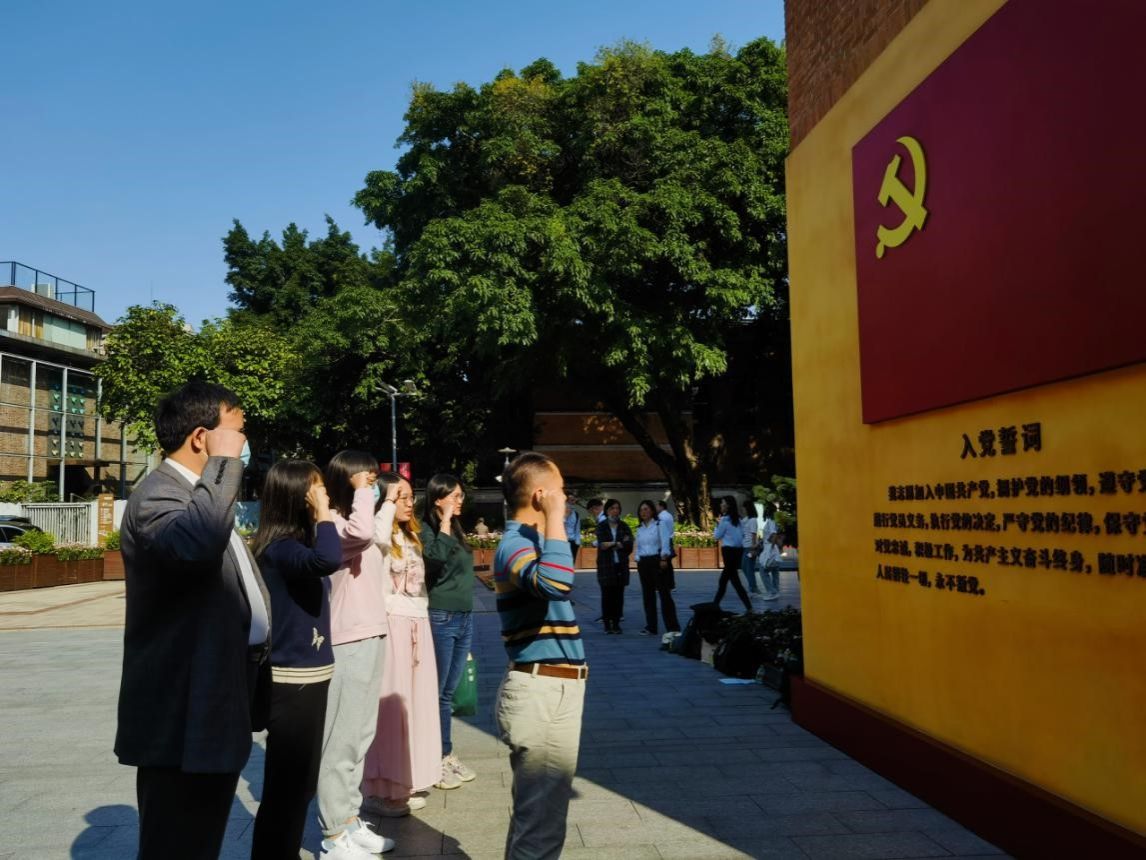 从展馆出来,全体党员满怀坚定的理想信念、激昂的革命斗志,在会址广场,举起右拳,面向党旗:“我志愿加入中国共产党,拥护党的纲领,遵守党的章程,履行党员义务,执行党的决议......”主题党日活动在庄严的重温入党誓词声中结束。