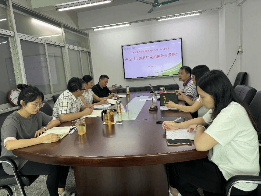 5月7日下午,m88 app党总支召开理论学习中心组扩大会议,专题学习新修订的《中国共产党纪律处分条例》(以下简称《条例》),全体党员参加会议,总支书记陈绍华主持会议。会议以领学的形式,原原本本、逐章逐条学《条例》,四位党员同志领学了《条例》的全文。