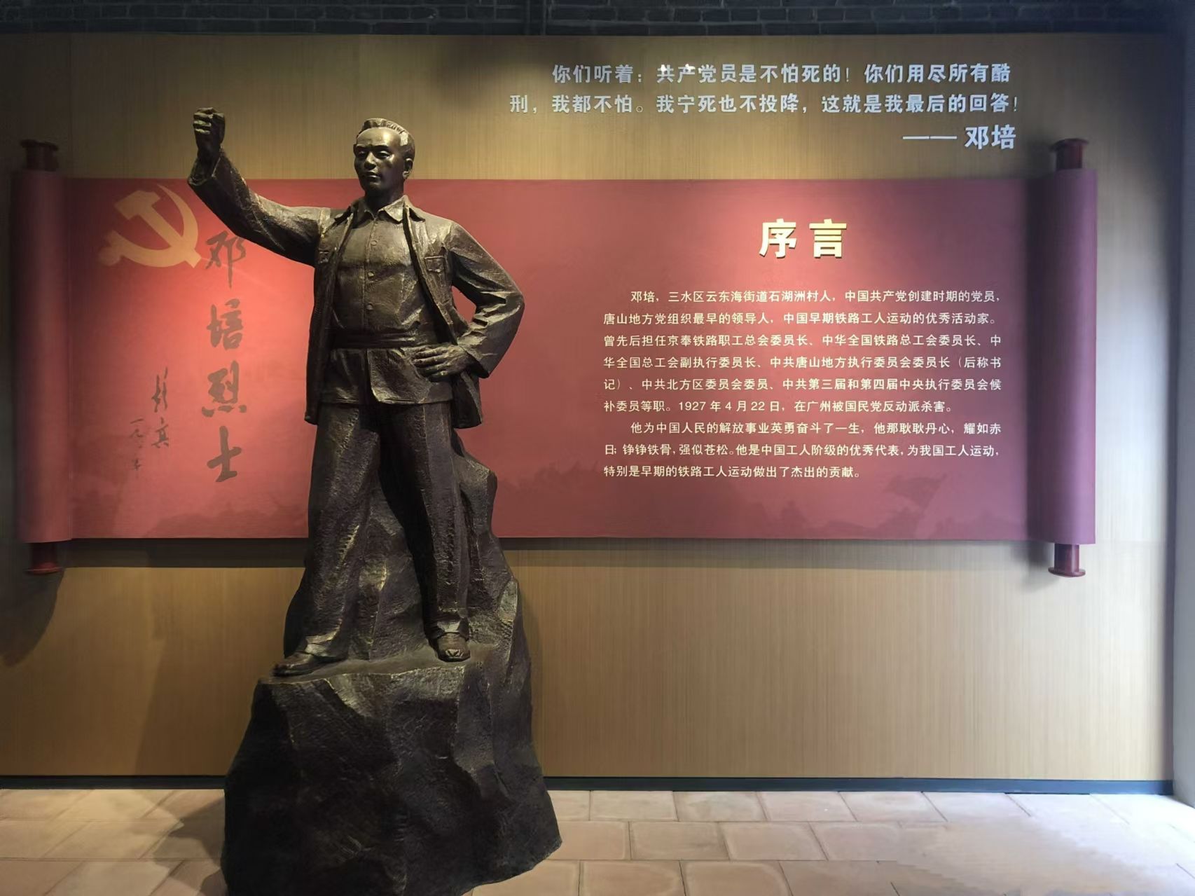 “你们听着,共产党员是不怕死的!你们用尽所有酷刑,我都不怕。我宁死也不投降,这就是我最后的回答!”邓培这段在英勇就义前的慷慨陈词令人肃然起敬,永远激励着中国人民为美好生活不断奋斗。